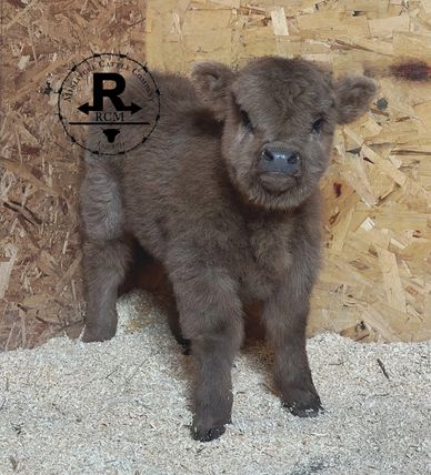 This handsome little devil is our 10% chance of a bull calf when using sexed heifer semen and we are not complaining that for the 7th year in a row, RCM Belle has given us a bull calf 🤦♀️. Heartbreaker is a dream Highpark Bull Calf with his bold red tips, 75% Highland % Highpark and perfectly structured head. Belle is a phenomenal 44 inch, deep bodied and squatty female that is hard to beat. RCM Mighty Warrior stamped Heartbreaker with his signature lightning bolts above the eye and thick dense soft hair. Loving this little bull calf for all he brings to the table as a future herd sire - naturally small non chondro genetics, the chondro gene, high highland % and sound structure. Heartbreaker is a solid start to our bull calf crop for the season, keeping the bar high and continuing the legacy of RCM Mighty Warrior.