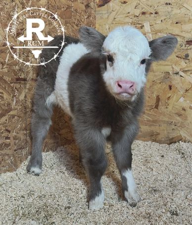 This guy is our 10% chance of a bull calf with AI sexed heifer semen and we couldn’t be more thrilled we got a bull calf said no one ever. RCM King is sired by RCM Silver Sterling and RCM Lola. He is the product of fierce genetics coming together and defying the odds. When I look at King, I can already envision him as a developed bull and he is going to be epic. King was 21 inches at birth, is suspected chondro positive and homozygous silver - all pending testing. Don’t miss out on your chance to own a Sterling Son of this caliber.