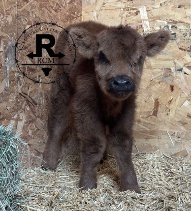 Just when you think you’ve seen the best of the season arrive, another little beauty hits the ground. Let me introduce to you RCM Mirabel, born to be the ranch princess! She is as striking as they come, lathered with endless amounts of hair, and that face of hers is just to die for! She brings it all to the table - high highland percentage, horned and chondro positive. RCM Warrior just continues to impress us with each and everyone of his calves and dam RCM Clementine we are so thankful for your very first heifer calf.