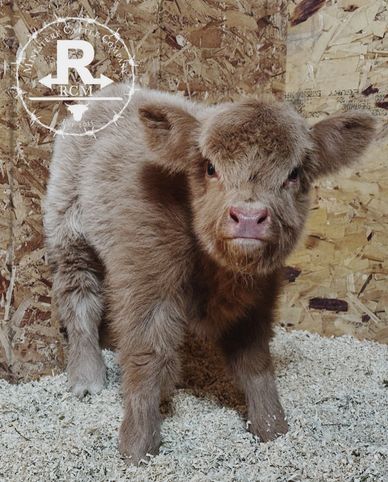 This outstanding HighPark Heifer brings everything to the table in one tiny perfect package! She is chondro positive, polled and 75% Highland x 25% White Galloway - a double coated breed of cattle. She screams quality and sets the industry standard high for the HighPark breed. Sired by the one and only RCM Mighty Warrior and RCM Ginnie, you won’t find a more perfect Miniature Highpark Heifer this season.