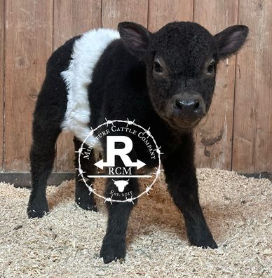 Panda Perfection hit the ground on August the 19th with this perfectly marked little panda faced heifer and her matching stockings! Does it truly get any better than this? Yes it does - Tinker is chondro positive and polled. Tinkers dam RCM Dharma is a very small framed Belted Galloway x Miniature Hereford and her sire is our tiniest little micro bull RCM Mighty Maximus - Silver Belted Galloway Bull / 36 inches / home raised right here at RCM. If you’re looking to make perfect panda babies down the road, Tinker is your girl!