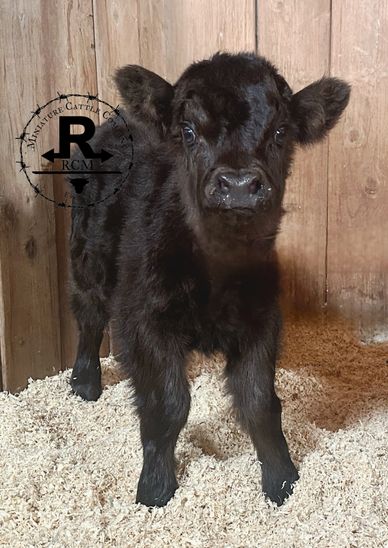 Betsy might be the absolute most beautiful Black Highland Heifer I’ve ever seen and to top it off, she carry’s the roan gene. Betsy is picture perfect in every way - loaded with intensely thick dense hair, the most perfect teddy bear face, 75% Highland x 25% Shorthorn and white roan hairs placed perfectly throughout her body, belly and chest. Betsy is a little SHOW STOPPER proudly sired by RCM Chebucca who is now proudly standing stud in Canada. Her dam RCM Washington totally knocked it out of the park this year.
